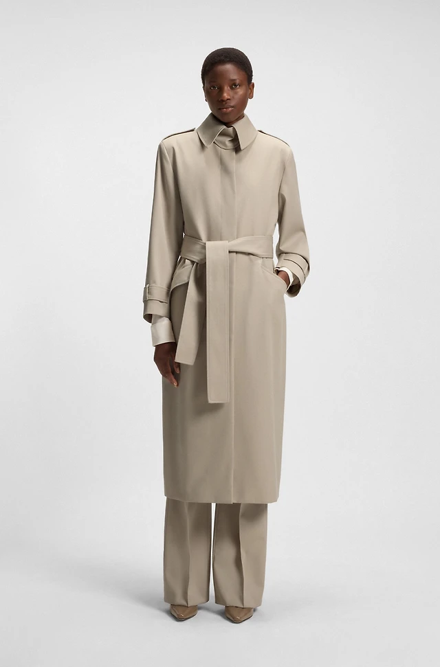 Virgin-wool trench coat with belt
