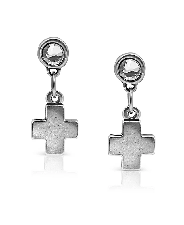 Bowood Lane Cubic Zirconia Silver Plated Post With Cross Earrings
