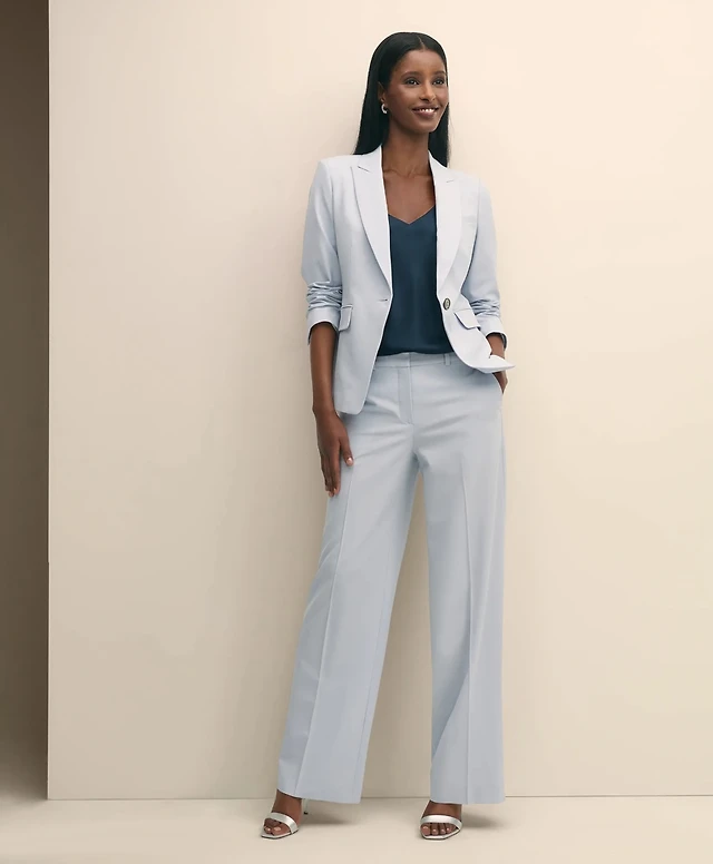 Merino Wool Blend Birdseye Wide Leg Trousers