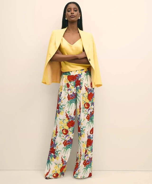 Floral Crepe Wide-Leg Pants