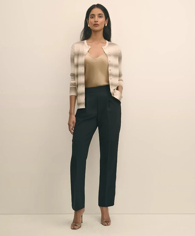 Easy Fit, Elastic Back Fine Twill Stretch Crepe Straight-Leg Pants