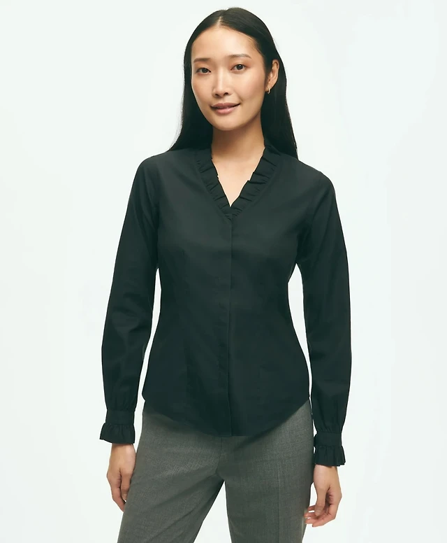 Fitted Non-Iron Stretch Supima<sup>®</sup> Cotton Ruffle Shirt