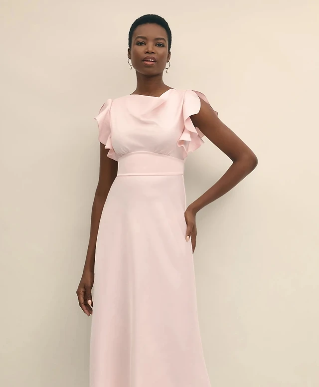 Chiffon Plaid Flutter-Sleeve Maxi Dress