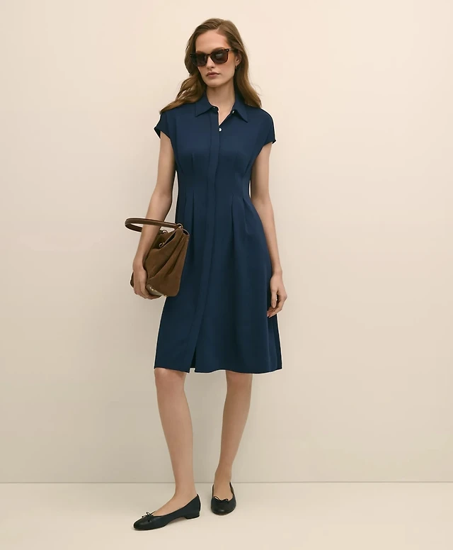 Cotton Sateen Fit-And-Flare Belted Shirt Dress