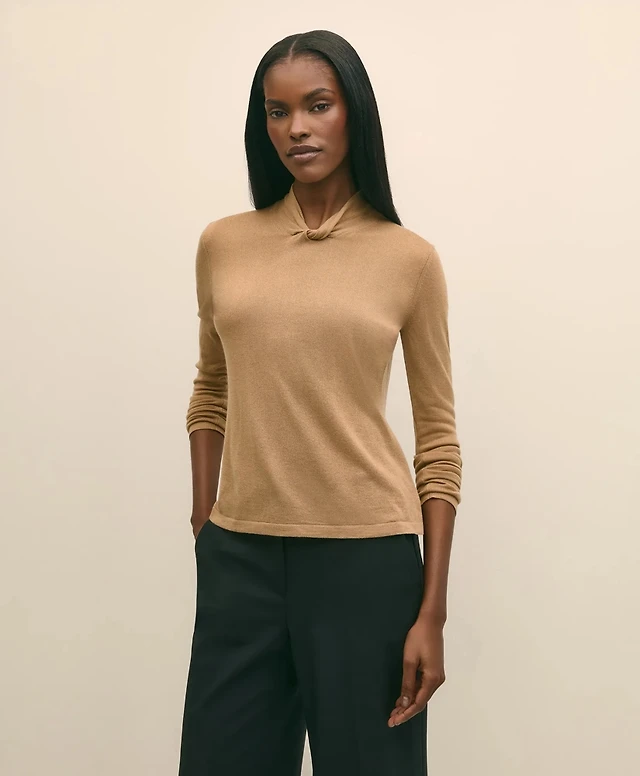 Wool-Cashmere Blend Brushed Short-Sleeve Sweater Shell