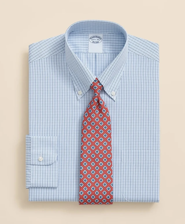 Brooks Brothers Explorer Collection Non-Iron Twill Ainsley Collar Windowpane, Dress Shirt