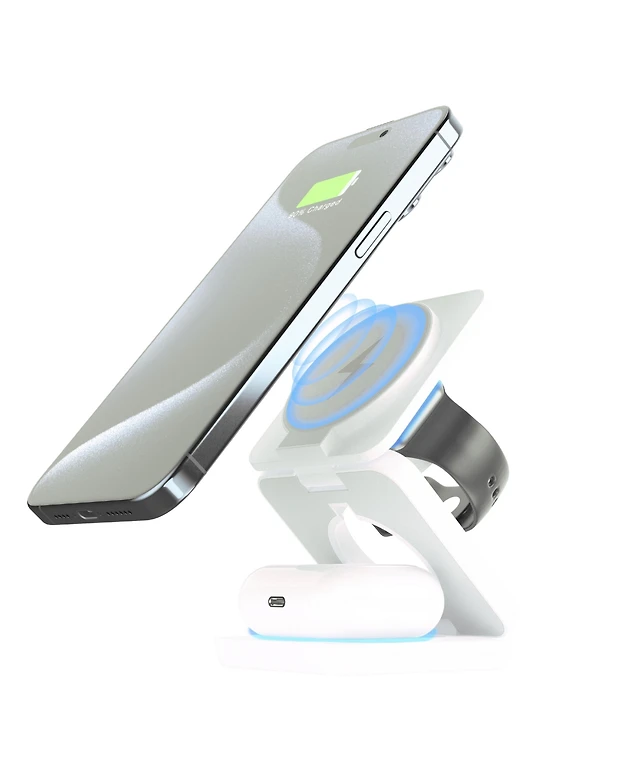 Brookstone Ultra Compact Foldable 3-in-1 Wireless Charging Station for Phone, Apple Watch, and Airpods