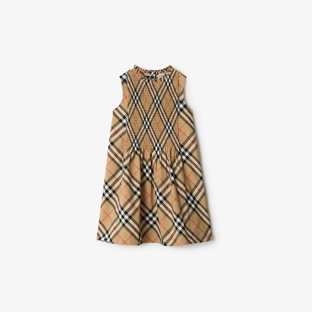 Check Cotton Poplin Dress in Sand | Burberry® Official