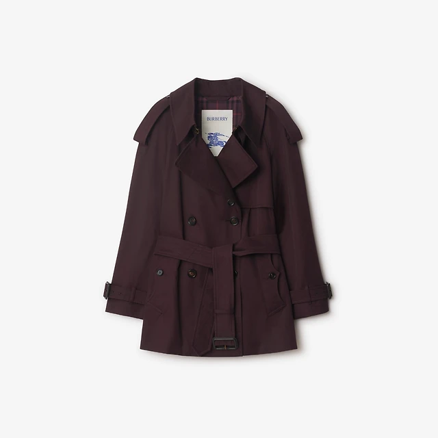 Short Gabardine Fitzrovia Trench Coat in Wine red - Women, Cotton Gabardine | Burberry® Official