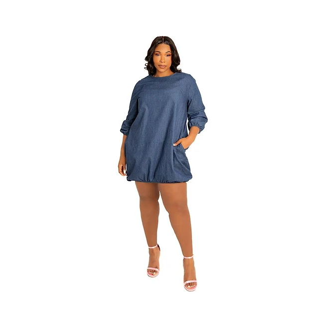 Buxom Couture Women's Plus Bubbled Denim Mini Dress