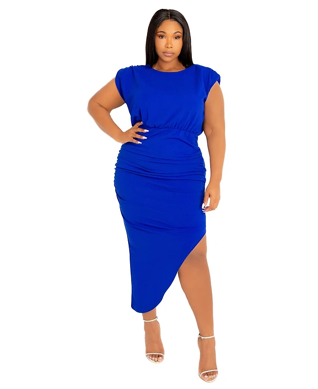 Buxom Couture Plus Sleeveless Asymmetrical Ruched Dress