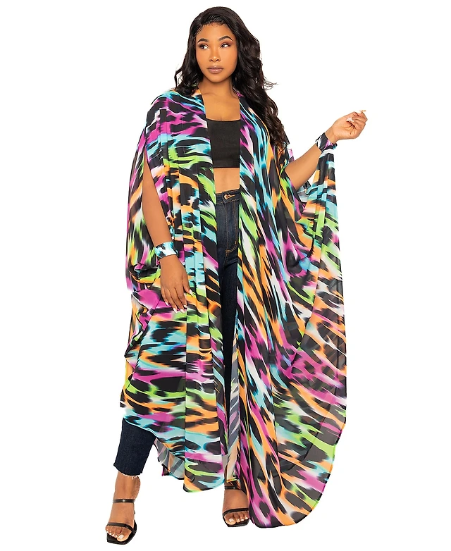 Buxom Couture Plus Size Buom Couture Animal Print Robe with Wrist Band
