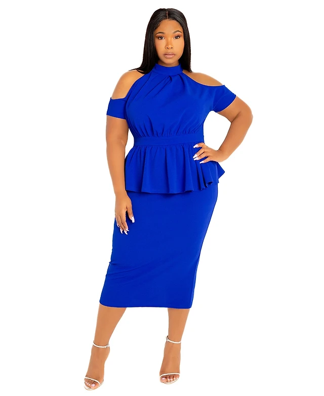 Buxom Couture Plus Cut-out Shoulder Peplum Midi Dress
