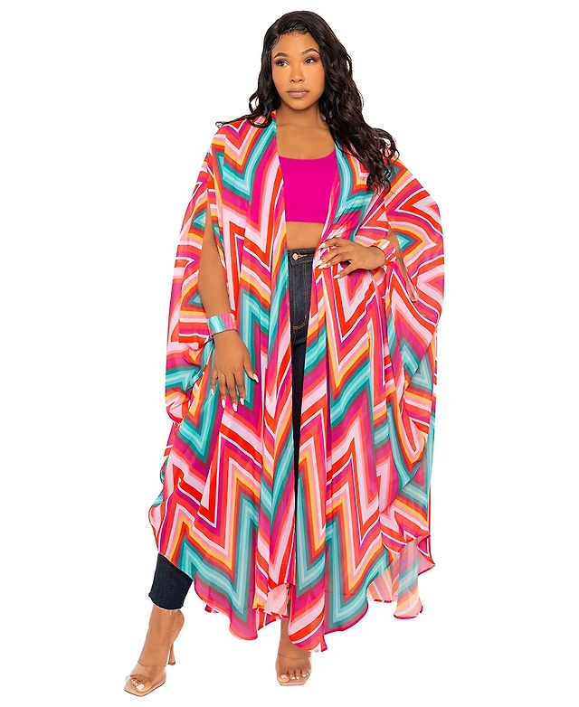 Buxom Couture Women's Plus Size Chevron Robe with Wrist Band