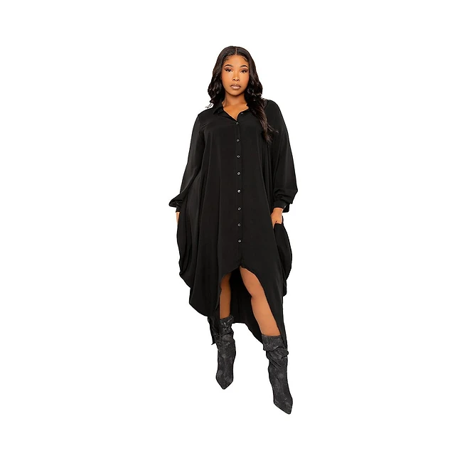 Buxom Couture Plus Size Bubbled Hem High Low Shirt Dress