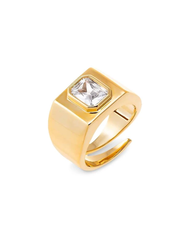 Cubic Zirconia Bezel Baguette Square Signet Adjustable Pinky Ring