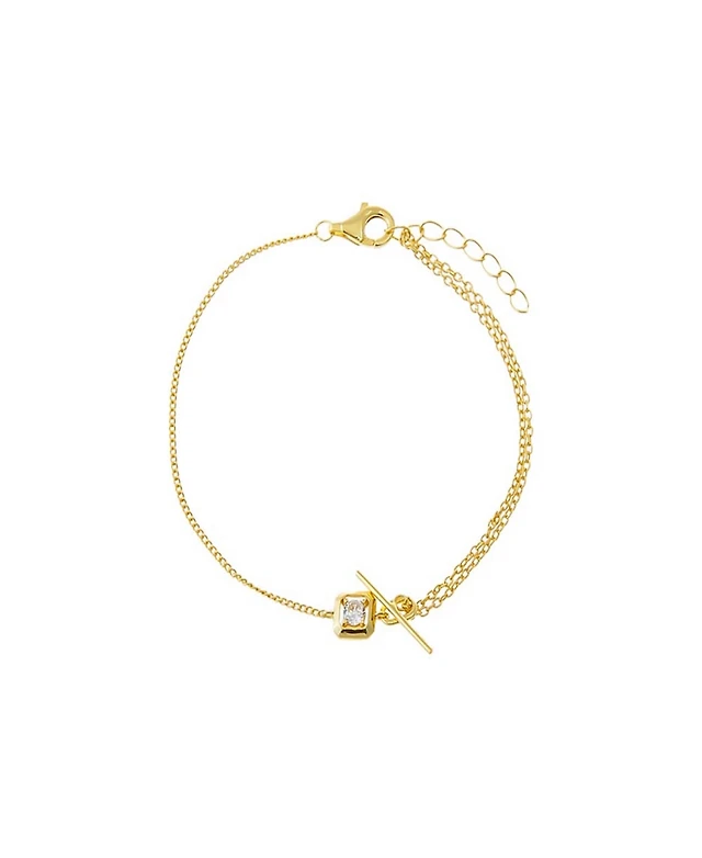 by Adina Eden Square Solitaire Gold Plated Stone Toggle Bracelet
