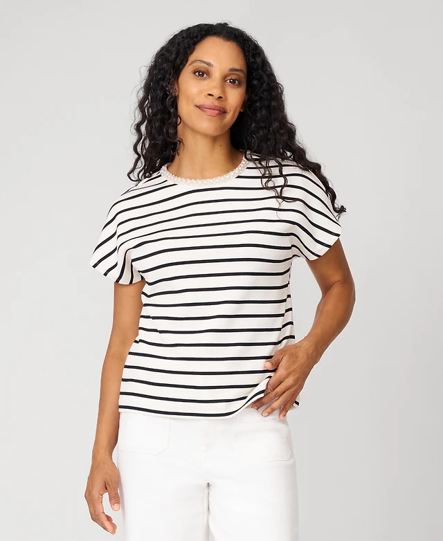 Cable & Gauge Women's Striped Crewneck Relaxed Tee