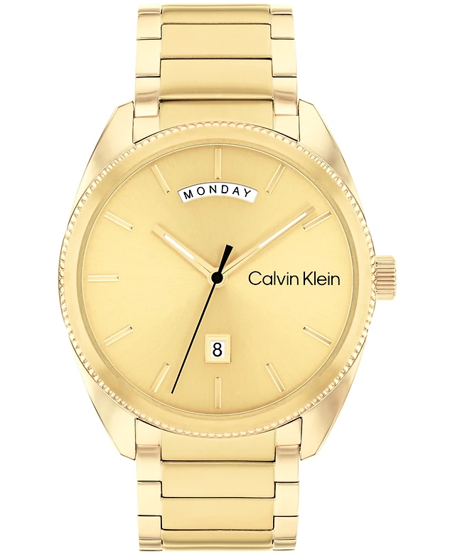 Calvin Klein Gold-tone Stainless Steel Logo Ring Double Chain Bracelet