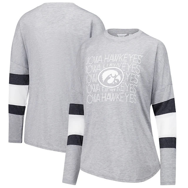 Women's Heather Gray Iowa Hawkeyes Swell Stripe Long Sleeve T-Shirt