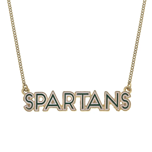 Women' CANVAS Style Michigan State Spartans Enamel Script Outline Necklace