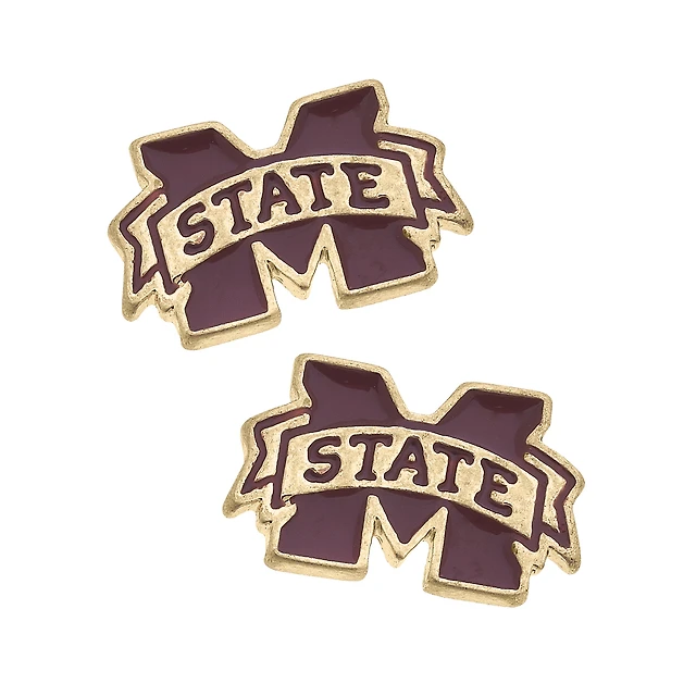 Women' CANVAS Style Mississippi State Bulldogs Enamel Stud Earrings