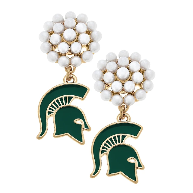 Women' CANVAS Style Michigan State Spartans Pearl Cluster Enamel Drop Earrings
