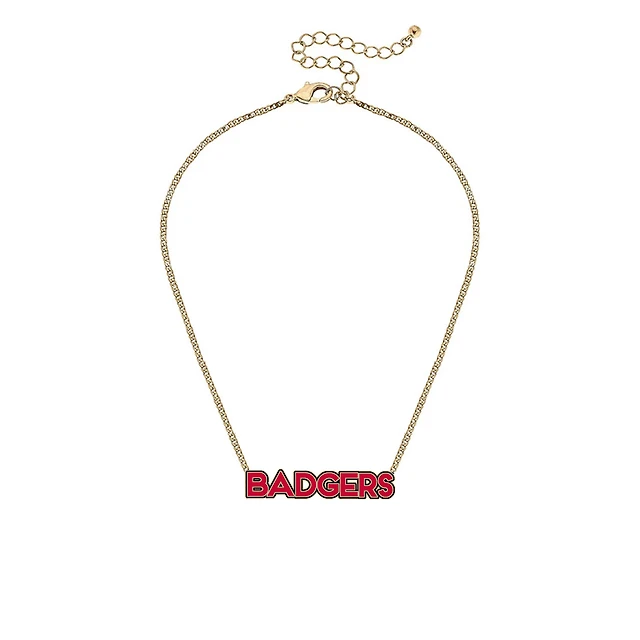 Women' CANVAS Style Wisconsin Badgers Enamel Script Outline Necklace