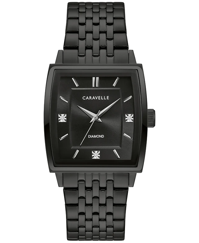 Caravelle Men's Classic Diamond Accent Black-Tone Stainless Steel Bracelet Watch 33mm