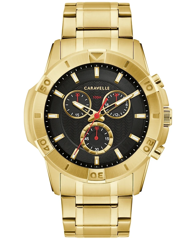 Caravelle designed by Bulova Men's Chronograph Gold Tone Stainless Steel Bracelet Watch 44mm
