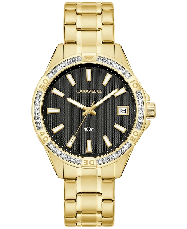 Caravelle Designed by Bulova Designed by Bulova Men's Diamond-Accent Gold-Tone Stainless Steel Bracelet Watch 40mm
