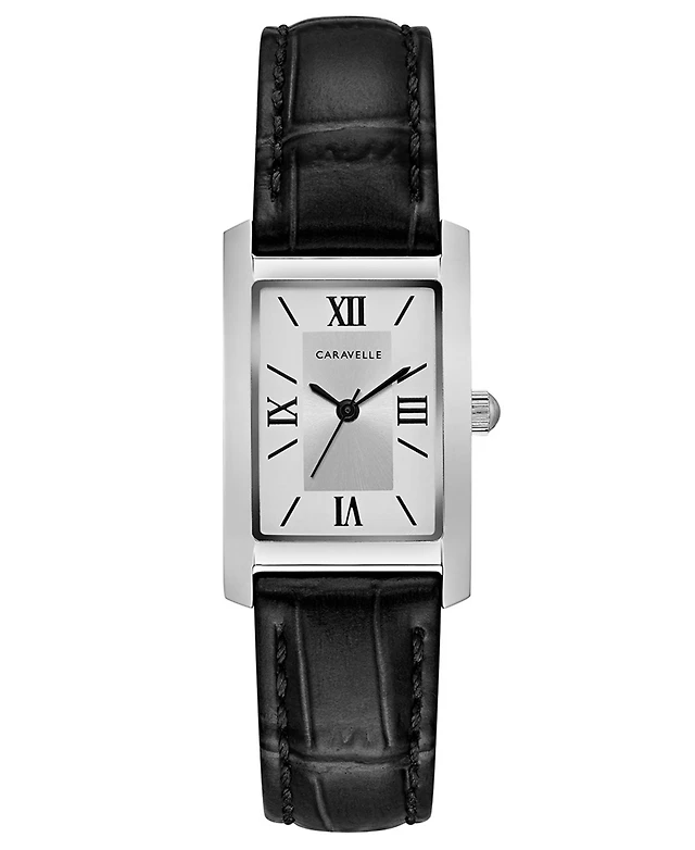 Caravelle Designed by Bulova Women's Black Leather Strap Watch 21x33mm