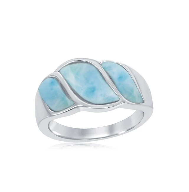 Sterling Silver Oval Larimar Rope Design Band Ring