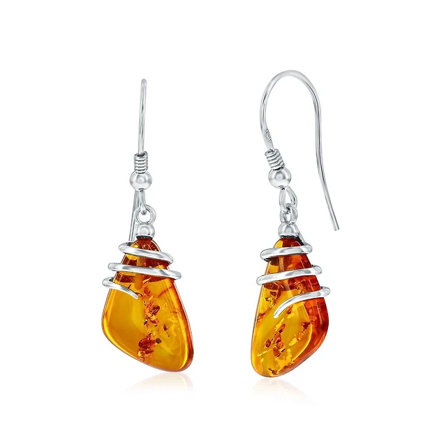 Caribbean Treasures Sterling Silver, Irregular Shaped Amber Dangle Earrings