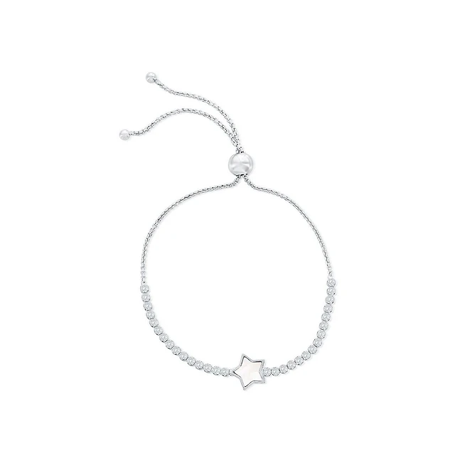 Caribbean Treasures Sterling Silver, Star Mop Center, Cz Adjustable Bolo Bracelet