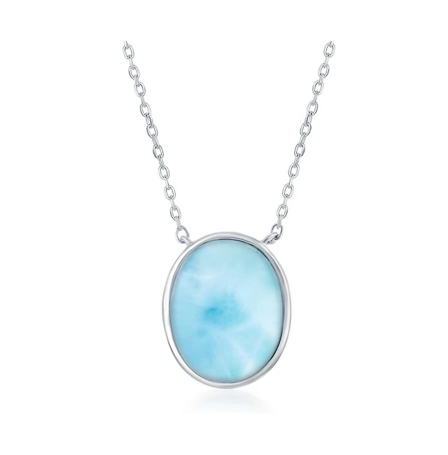 Sterling Silver Oval Larimar Adjustable Bolo Bracelet