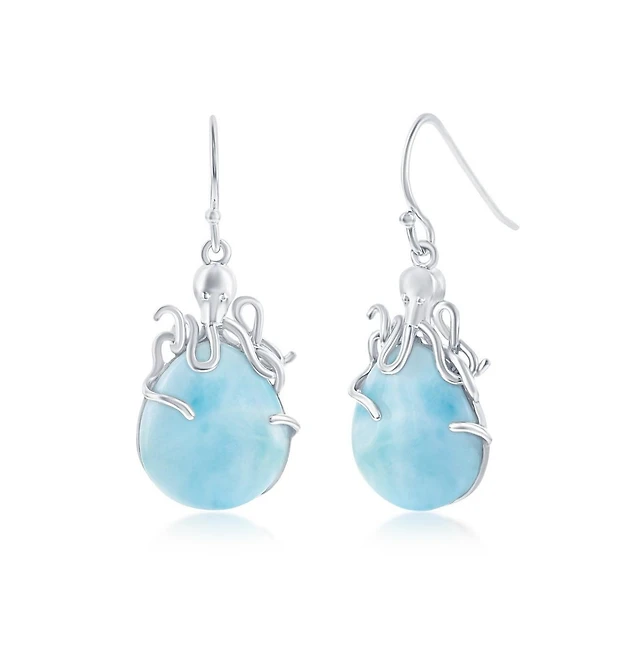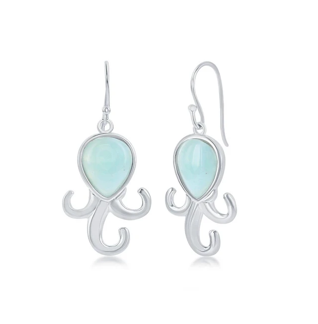 Sterling Silver Pear-Shaped Larimar Octopus Earrings