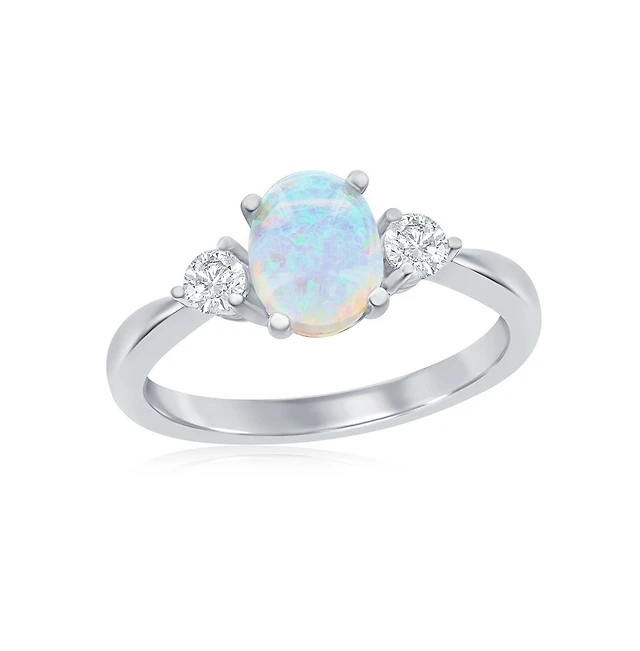 Sterling Silver Blue Inlay Opal Oval Twist With Cz Ring