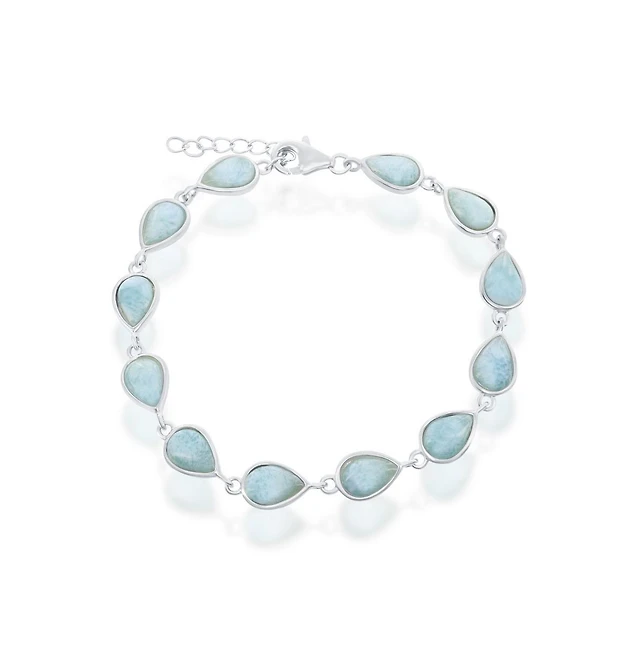 Sterling Silver Pear-Shaped Larimar Linked Bracelet