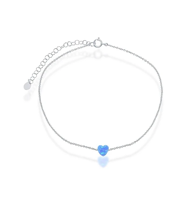 Caribbean Treasures Sterling Silver Synthetic Blue Opal Heart Anklet
