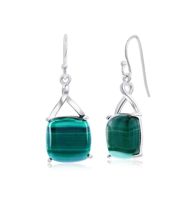 Sterling Silver or Gold plated over Square Malachite Earrings