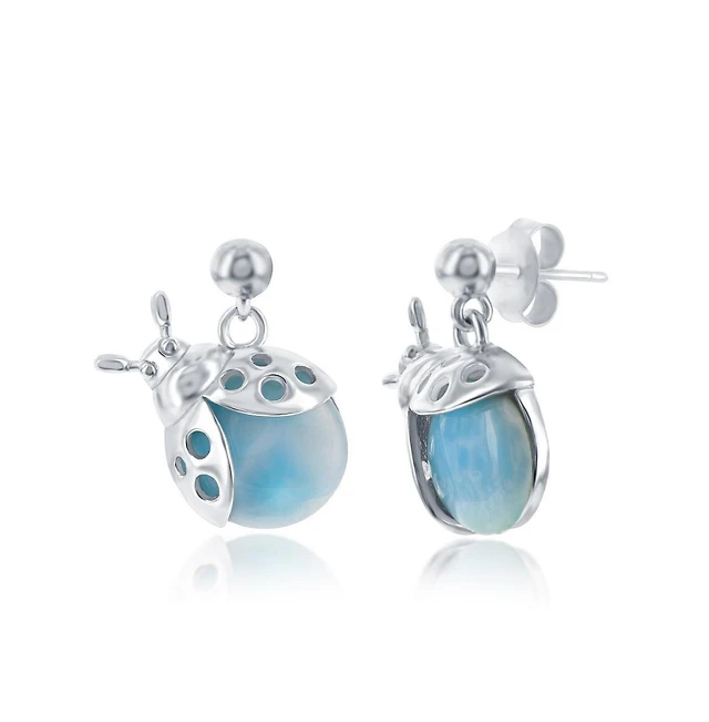 Caribbean Treasures Sterling Silver Larimar Lady Bug Earrings