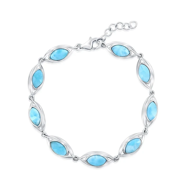 Caribbean Treasures Sterling Silver, Larimar Marquise Bracelet