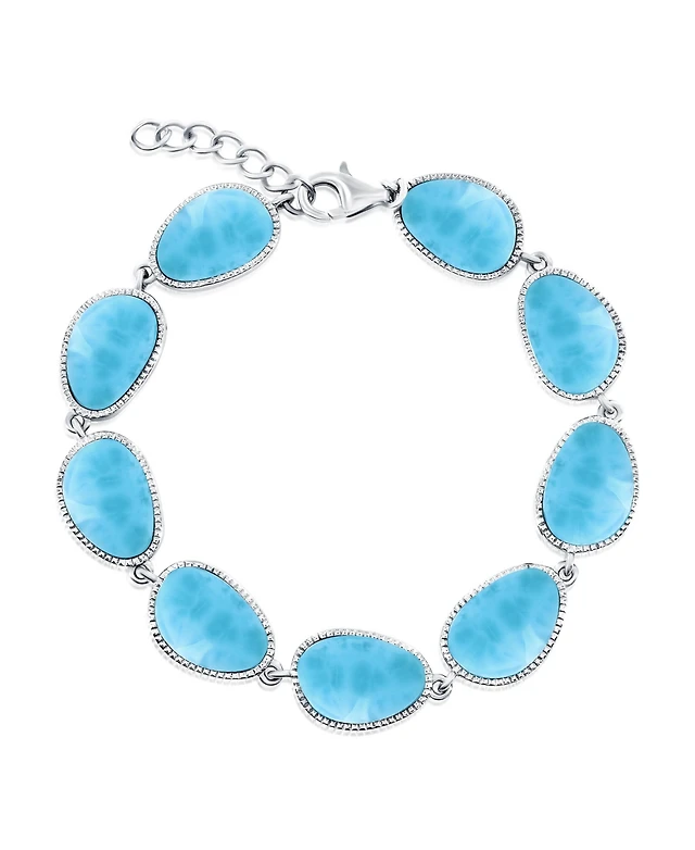 Caribbean Treasures Sterling Silver, Square Larimar Link Bracelet