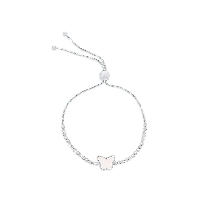Caribbean Treasures Sterling Silver, Butterfly Mop Center, Cz Adjustable Bolo Bracelet