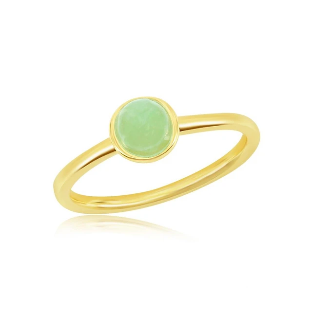Sterling Silver 5mm Round Jade Solitaire Ring - Gold Plated