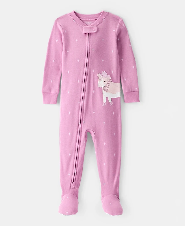 Carter's Baby Girls Cowgirl Cow Applique 100% Cotton Long-Sleeve 2-Way-Zip 1-Piece Footed Pajamas