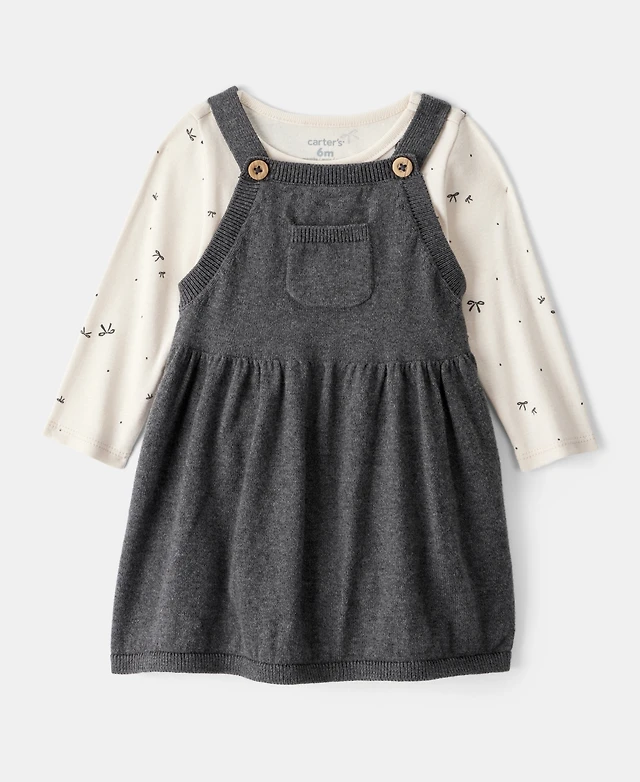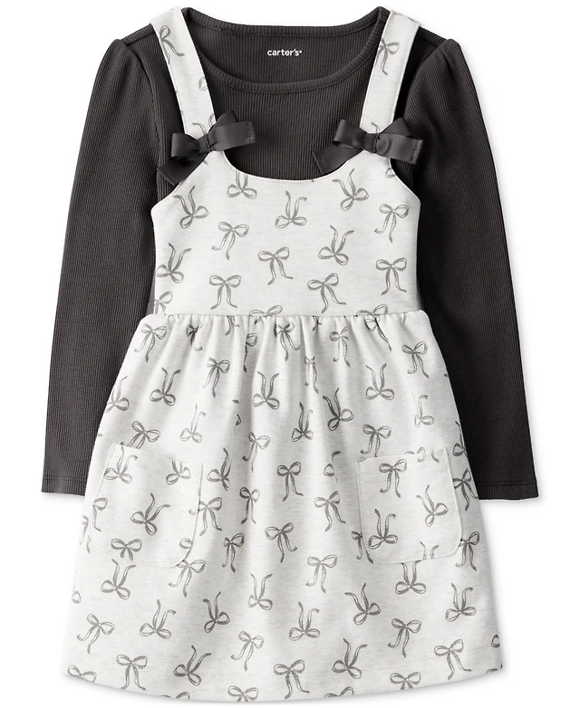 Carter's Baby Girls Cotton Bow-Print Long-Sleeve Bodysuit & Jumper Dress, 2 Piece Set