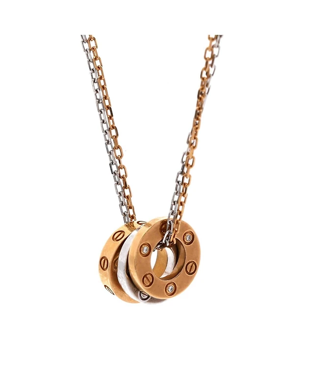 Pre-Owned Cartier Love 3 Ring Pendant Necklace 18K Rose Gold and 18K White Gold with 6 Diamonds