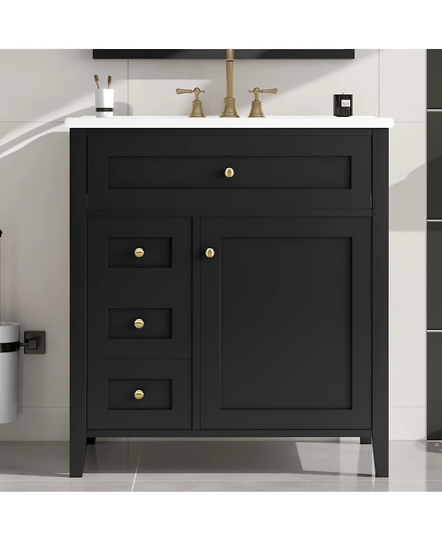Casainc Bathroom Vanity with Sink 3 Drawers and Adjustable Shelf Freestanding Storage